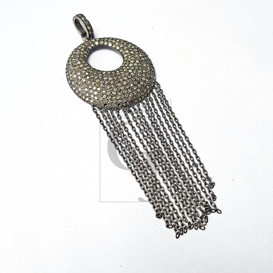 Very beautiful designed chain charm Rocecut pave diamond pendant 925 sterling silver finish handmade finish diamond jewelry 75mm