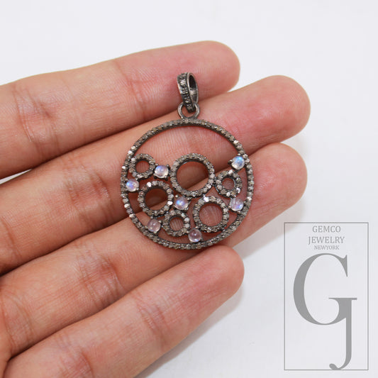 Beautiful Moonstone Designer Rosecut Pave Diamond Pendant Sterling Silver Handmade Finish Rainbow Moonstone Diamond Jewelry Pendant Charm