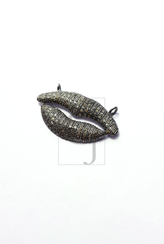 Oxidized Finish Lips Design Rosecut Pave Diamond Pendant 925 Sterling Silver Handmade Finish Diamond Pendant Jewelry
