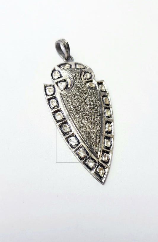 Very beautiful arrow head design Rocecut pave diamond pendant 925 sterling silver handmade finish diamond pendant Hollywood style jewelry