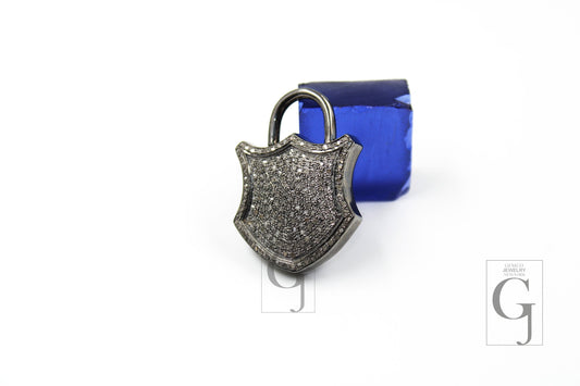 Antique Look Padlock Designer Pendant Rosecut Pave Diamond Pendant 925 Sterling Silver Handmade Finish Diamond Charms Necklace Pendant