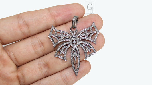 Fashionable Starburst Rosecut Pave Diamond Pendant 925 Sterling Silver Handmade Finish Diamond Charms Available In Vermeil, Oxidised Also