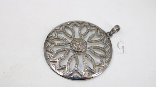 Very beautiful designer sunflower pendant Rosecut pave diamond pendant 925 sterling silver handmade finish diamond jewelry necklace pendant