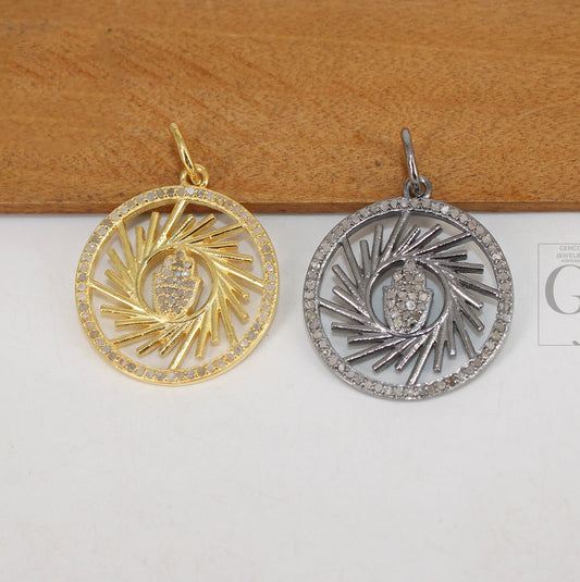 Hamsa Design Rosecut Pave Diamond Pendant 925 Sterling Silver Handmade Beautiful Finish Diamond Pendant Jewelry