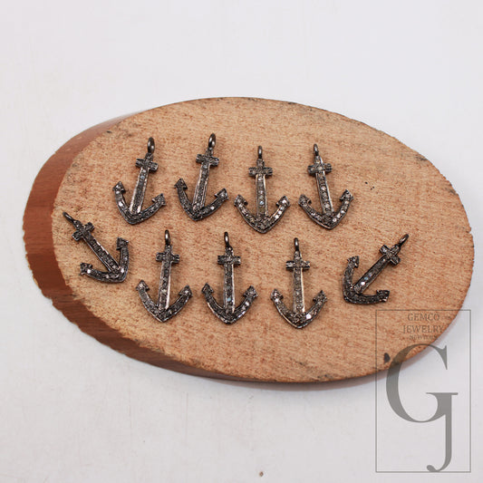 Very beautiful anchor pendant Rosecut pave diamond pendant 925 sterling silver handmade finish diamond charms necklace pendant jewelry