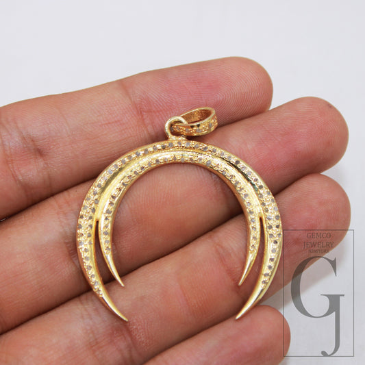 1pc Vermail Gold Latest Moon Designer Rosecut Pave Diamond Pendant 925 Sterling Silver Handmade Finish Diamond Charm Pendant Jewelry