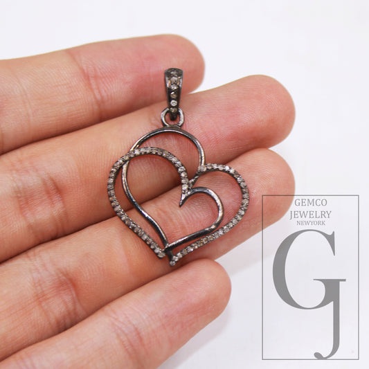 1pc Heart Designer Rosecut Pave Diamond Pendant 925 Sterling Silver Handmade Finish Love Diamond Pendant Jewelry Antique Finish Sale Pendant