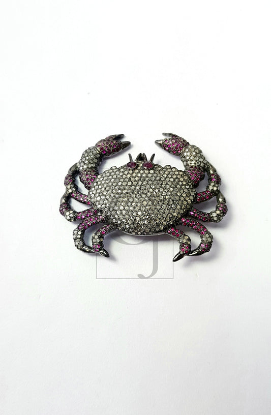 Beautiful One Of Kind Crab Designer Rosecut Pave Diamond Pendant 925 Sterling Silver Handmade Finish Diamond Jewelry Pendant