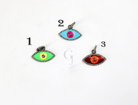 Very Beautiful Enamel Evil Eye Pendant Rosecut Pave Diamond Pendant 925 Sterling Silver Handmade Finish Diamond Charms Necklace Pendant