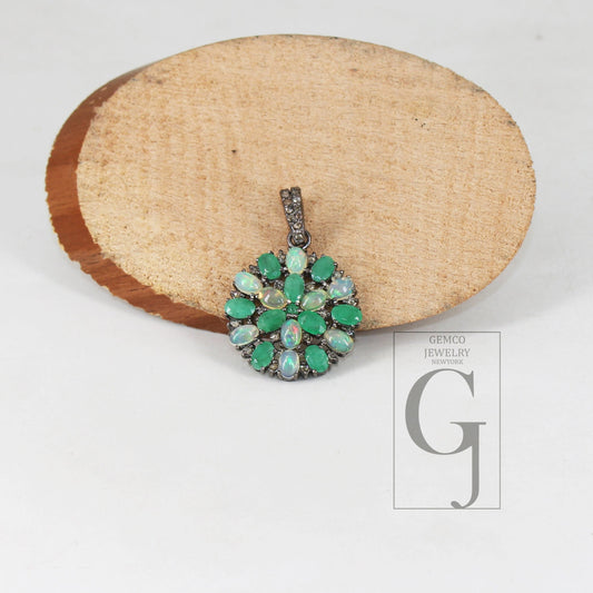 Beautiful Emerald Opal Designer Pendant Rosecut Pave Diamond Pendant 925 Sterling Silver Handmade Finish Diamond Charms Necklace Pendant