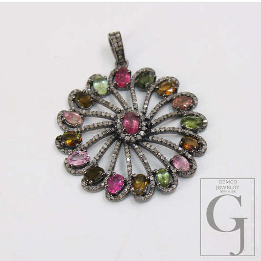 Multi tourmaline designer pendant Rosecut pave diamond pendant 925 sterling silver handmade finish diamond charms necklace pendant