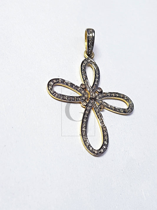 Pave Diamond Rosecut Pendant 925 Sterling Silver Pendant Handmade Diamond Pendant Beautifully Designed Cross Shaped Diamond Charm Pendant