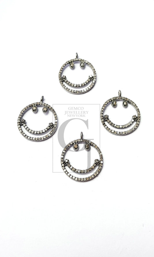 Charm pendent Smiley design Rosecut pave diamond pendant 925 sterling silver handmade finish beautiful diamond pendant jewelry