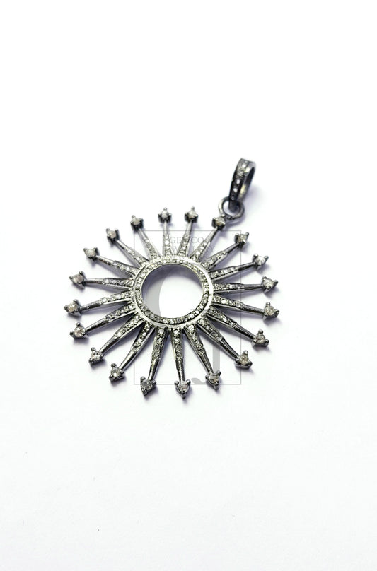 1pc Sunburst Design Rosecut Pave Diamond Pendant 925 Sterling Silver Handmade Finish Very Beautiful Stylish Diamond Pendant Jewelry