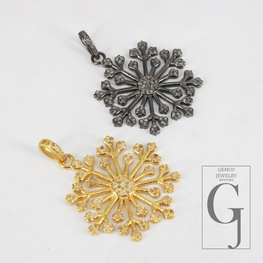 Beautiful Snowflake Designer Pendant Rosecut Pave Diamond Pendant 925 Sterling Silver Handmade Finish Diamond Charms Necklace Pendant