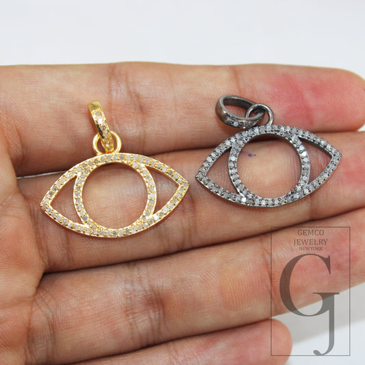 Beautiful Evil Eye Pendant Designer Rosecut Pave Diamond Pendant 925 Sterling Silver Handmade Finish Diamond Charms Necklace Pendant