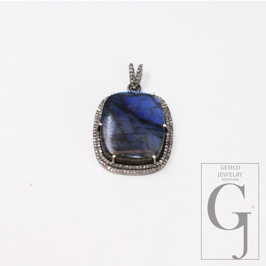 Antique Look Labradorite Pendant Designer Rosecut Pave Diamond 925 Sterling Silver Handmade Finish Pendant Diamond Charms Necklace Pendant