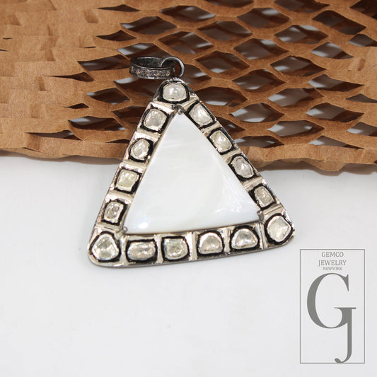 1pc Pearl With Polki Diamond Slice Diamond Pendant Rosecut Pendant 925 Sterling Silver Handmade Pendant Jewelry Pendant For Necklaces