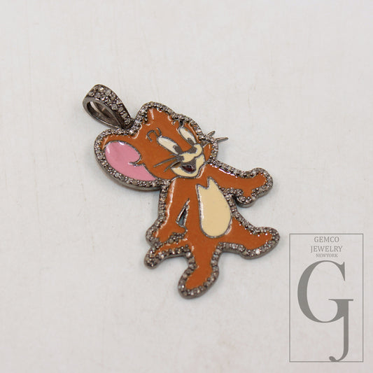 1pc Enameling TOM And Jerry Pendant Rosecut Pave Diamond Pendant Sterling Silver Handmade Finish Diamond Charm Necklace Jerry Mouse Pendant