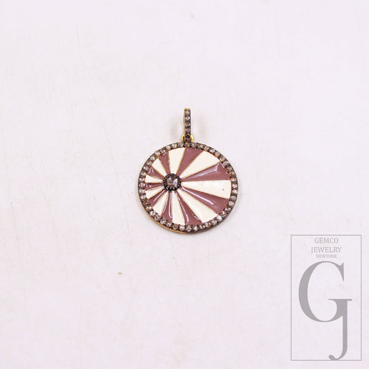 Royal Vermeil Enamel Sunburst Nomad Pendant Rosecut Pave Diamond Pendant 925 Sterling Silver Handmade Diamond Charms Necklace Pendant