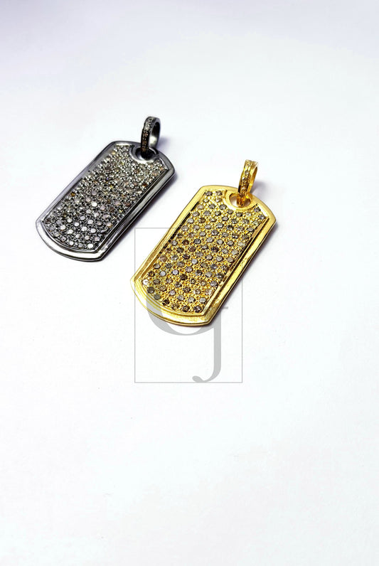 Very beautiful Rosecut pave diamond pendant 925 sterling silver handmade finish dog tag design diamond pendant jewelry