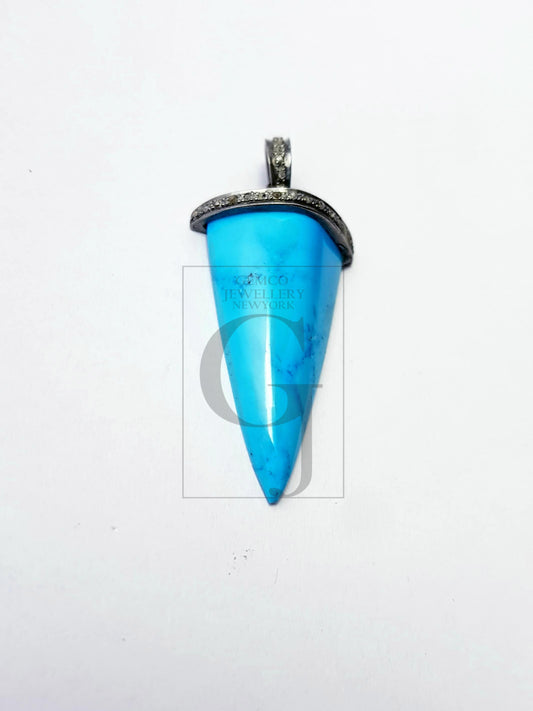 Beautiful Designer Rosecut Pave Diamond Pendant 925 Sterling Silver Handmade Finish Turquoise Stone Diamond Pendant Jewelry