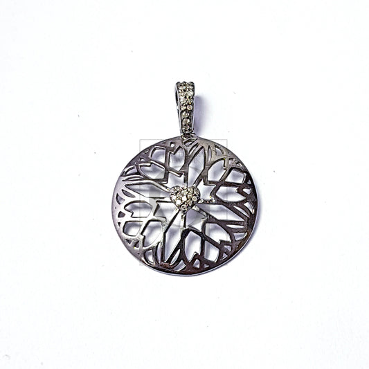 Antique Look Designer Rosecut Pave Diamond Pendant 925 Sterling Silver Handmade Finish Diamond Pendant Jewelry