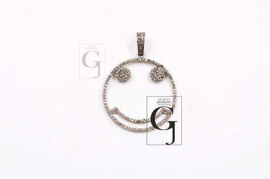 Beautiful Designer Smiley Rosecut Pave Diamond Pendant 925 Sterling Silver Handmade Finish Diamond Charms Necklace Pendant Jewelry Supplies
