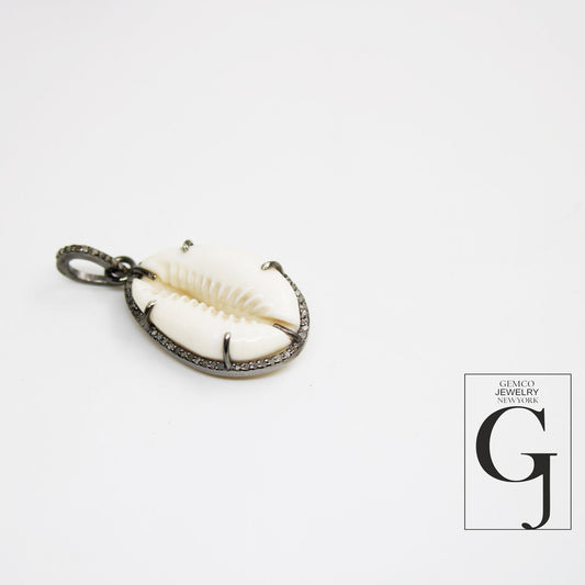 Beautiful Designer Cowrie 14K Gold Designer Rosecut Pave Diamond Pendant 925 Sterling Silver Oxidised Handmade Diamond Charm Pendant