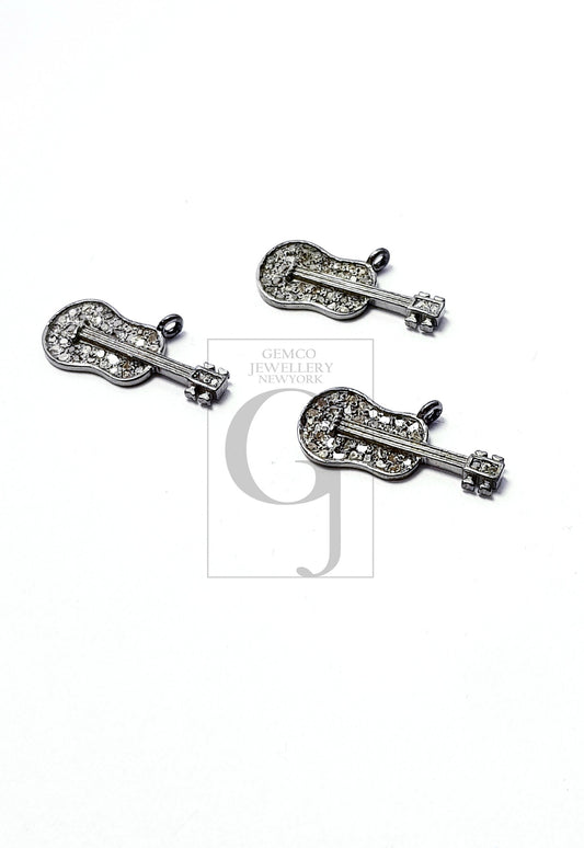 Beautiful Guitar Rosecut Pave Diamond Pendant 925 Sterling Silver Handmade Finish Diamond Pendant Jewelry