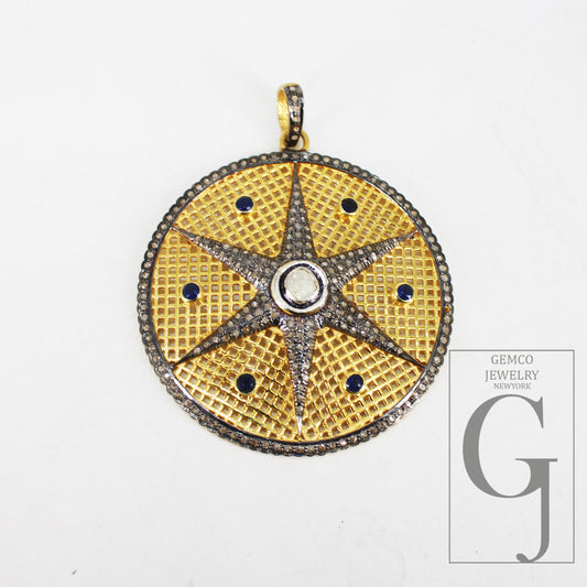 Starburst Blue sapphire pendant Pave diamond rosecut pendant 925 sterling silver pendant handmade pendant Diamond Star Charm pendant jewelry