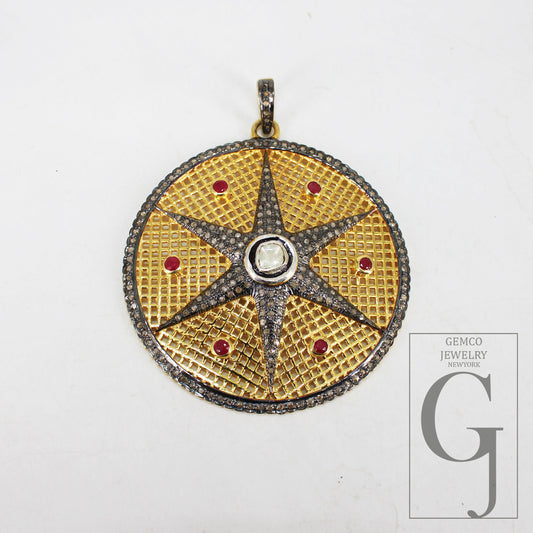 Starburst Ruby Red Pendant Pave Diamond Rosecut Pendant 925 Sterling Silver Pendant Handmade Pendant Diamond Star Rose Cut Charm Pendant