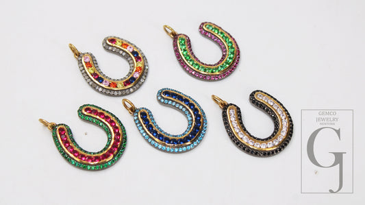 1pc Horseshoe Pendant Rosecut Pave Diamond Pendant 925 Sterling Silver Handmade Finish Diamond , Green, Blue, Red, Black Jewelry Pendant