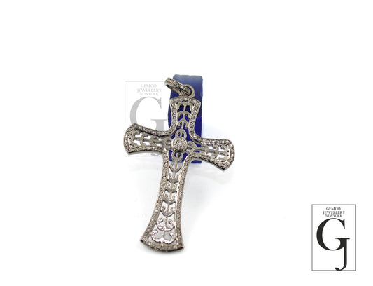 One of a kind Cross designer diamond pendant Rosecut pave diamond pendant 925 sterling silver handmade finish diamond charm necklace pendant