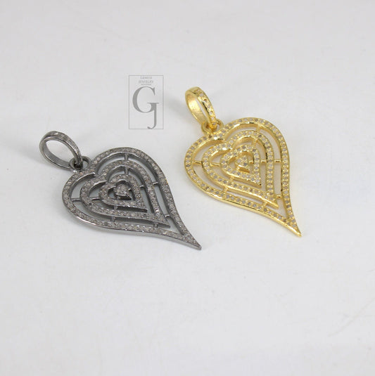 Latest designer diamond heart pendant Rosecut pave diamond pendant 925 sterling silver handmade finish diamond charms necklace pendant