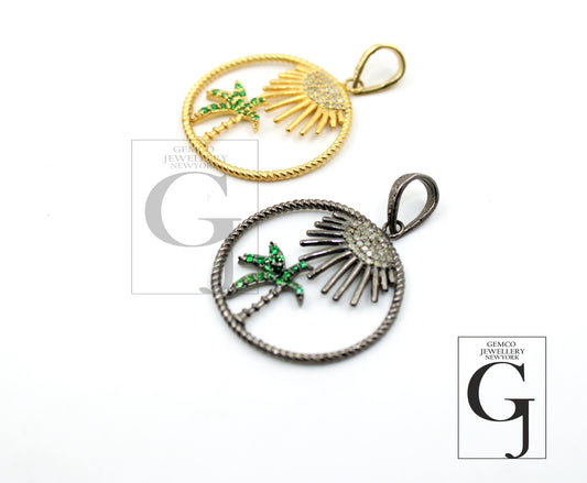 Very beautiful beach designer emerald Rosecut pave diamond pendant 925 sterling silver handmade finish diamond jewelry necklace pendant