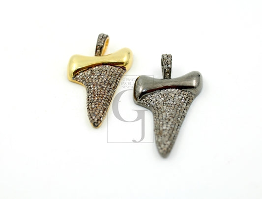 Beautiful Shark Tooth Designer Pendant Rosecut Pave Diamond Pendant 925 Sterling Silver Handmade Finish Diamond Jewelry Necklace Pendant
