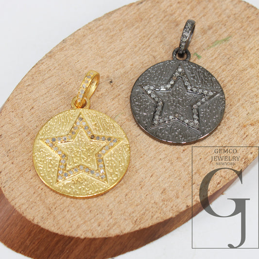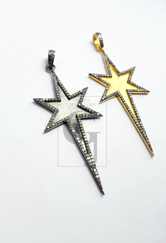 Star design Rosecut pave diamond pendant 925 sterling silver handmade finish beautiful diamond pendant jewelry