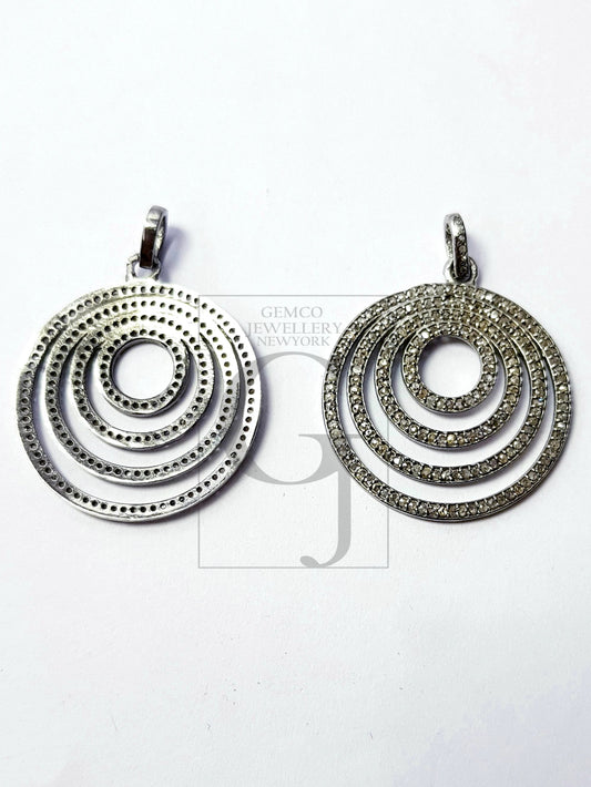 Beautiful Designer Rosecut Pave Diamond Pendant 925 Sterling Silver Handmade Finish Circle Shaped Diamond Pendant Jewelry
