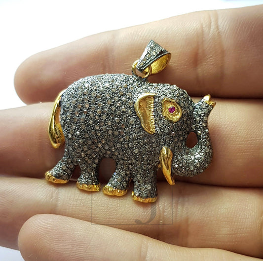Beautiful Designed Elephant Shaped Rosecut Pave Diamond Pendant 925 Sterling Silver Handmade Finish Diamond Pendant Jewelry