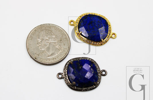 1pc Lapis Diamond Connector Designer Rosecut Pave Diamond Connector 925 Sterling Silver Handmade Finish Diamond Charm Necklace Connector