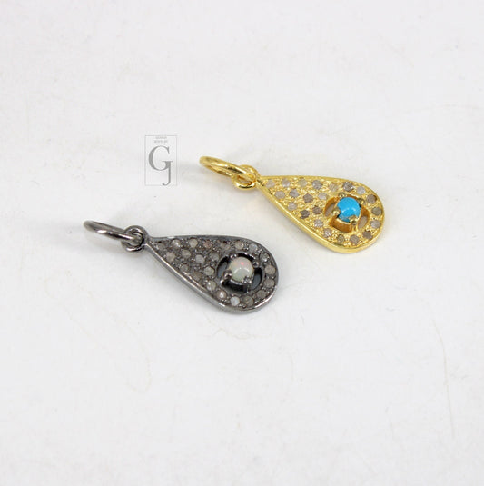 Tear Drop pendant Opal turquoise designer Rosecut pave diamond pendant 925 sterling silver handmade finish diamond charm necklace pendant