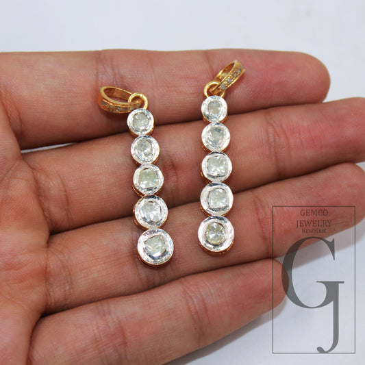 Antique Polki Pendant Diamond Designer Rosecut Slice Diamond Pendant 925 Sterling Silver Handmade Finish Diamond Jewelry Necklace Pendant