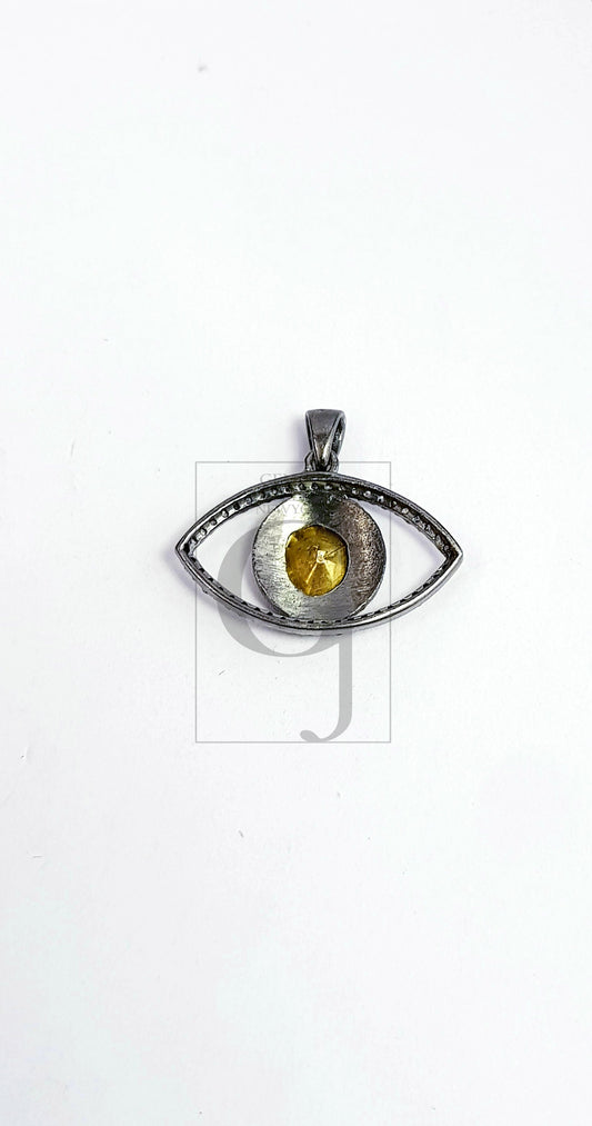 Evil eye design flat diamond style Rosecut pave diamond pendant 925 sterling silver handmade finish polki diamond pendant jewelry