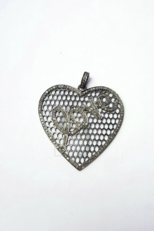Heart shaped very beautiful designer Rocecut pave diamond love pendant 925 sterling silver handmade finish love diamond pendant jewelry