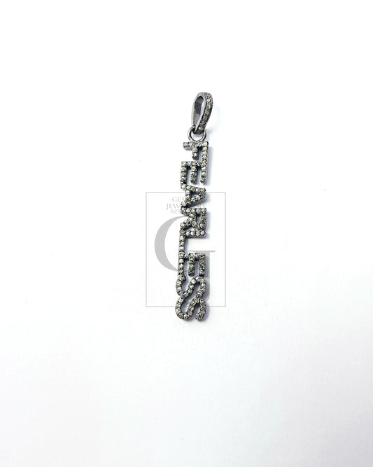 Very Beautiful FEARLESS Word Designer Rosecut Pave Diamond Pendant 925 Sterling Silver Handmade Finish Diamond Jewelry Pendant