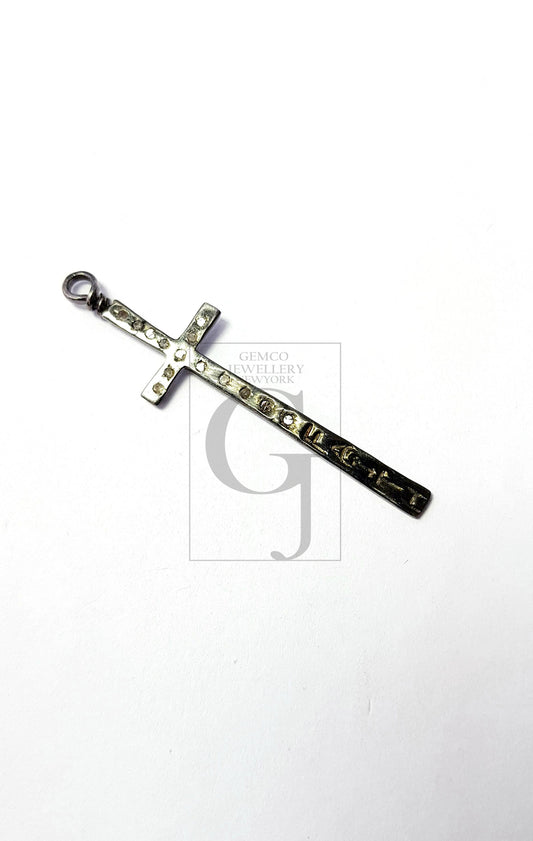 Cross designer beautiful Rosecut pave diamond pendant 925 sterling silver handmade finish diamond faith jewelry pendant