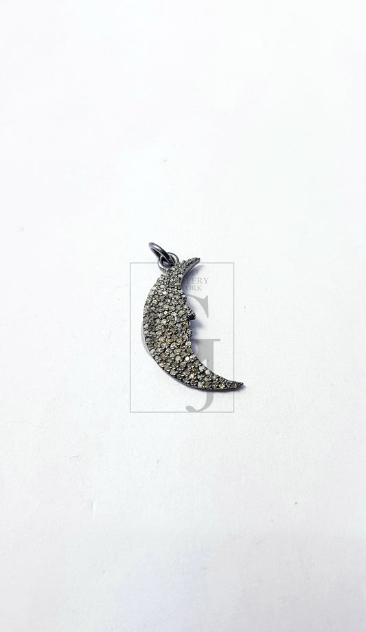 Beautiful Crescent Moon Designer Rosecut Pave Diamond Pendant 925 Sterling Silver Handmade Finish Diamond Jewelry Pendant