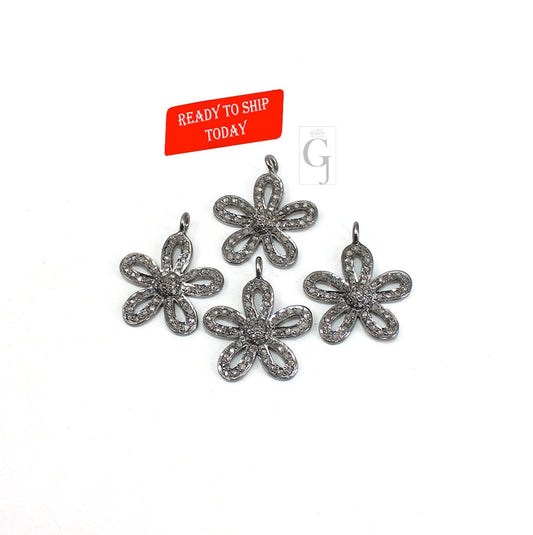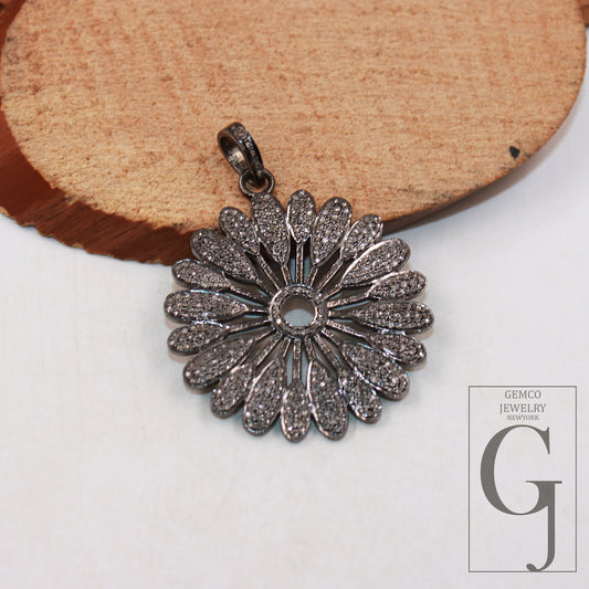 1pc Oxidized Finish Flower Designer Rosecut Pave Diamond Pendant 925 Sterling Silver Handmade Finish Diamond Pendant Jewelry With Video