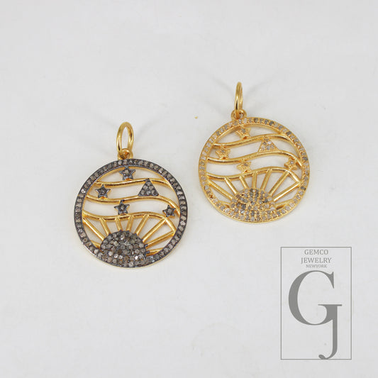 14k Finish Starburst Pendant Designer Rosecut Pave Diamond Pendant Sterling 925 Silver Handmade Finish Diamond Charms Necklace Pendant